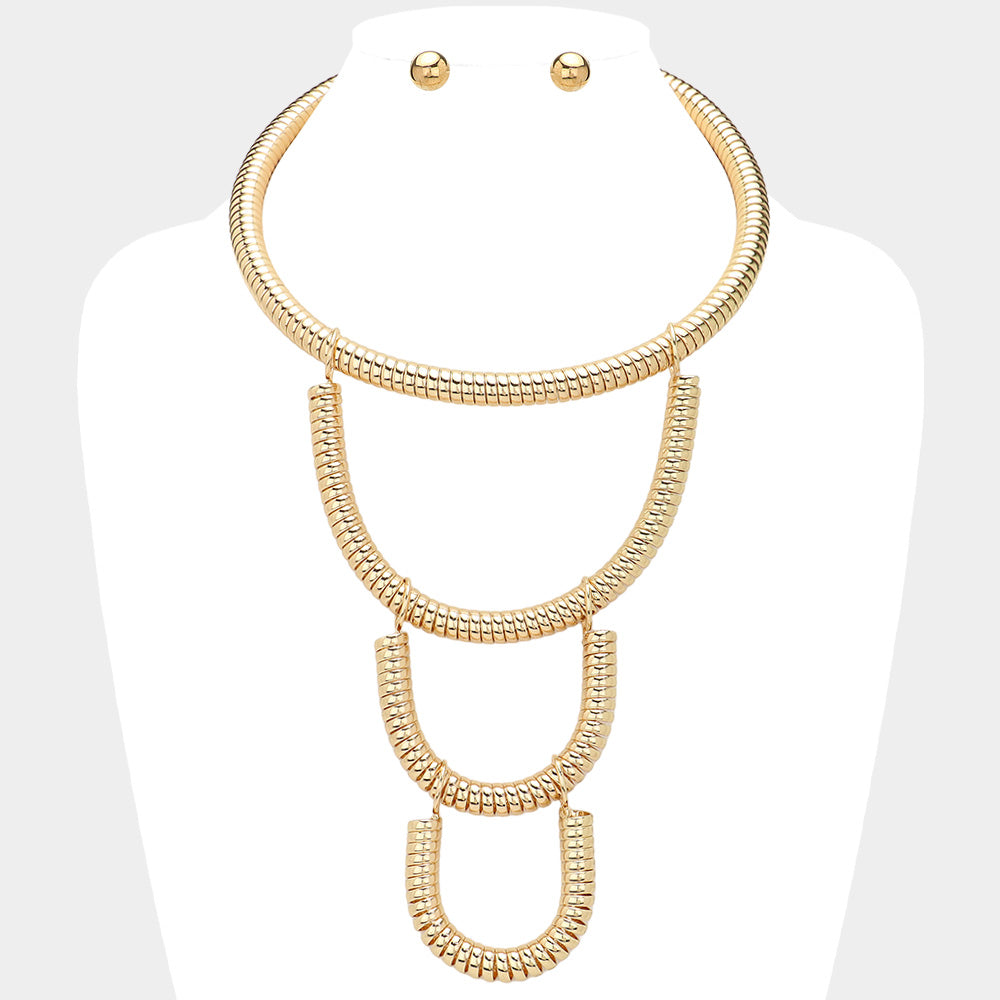 Make a playful statement with our Abstract Coil Gold Necklace Set. Its abstract coil design is sure to catch attention and add a touch of quirkiness to any outfit. Perfect for those who like to stand out and have a unique sense of style. Shine on with this one-of-a-kind necklace set!