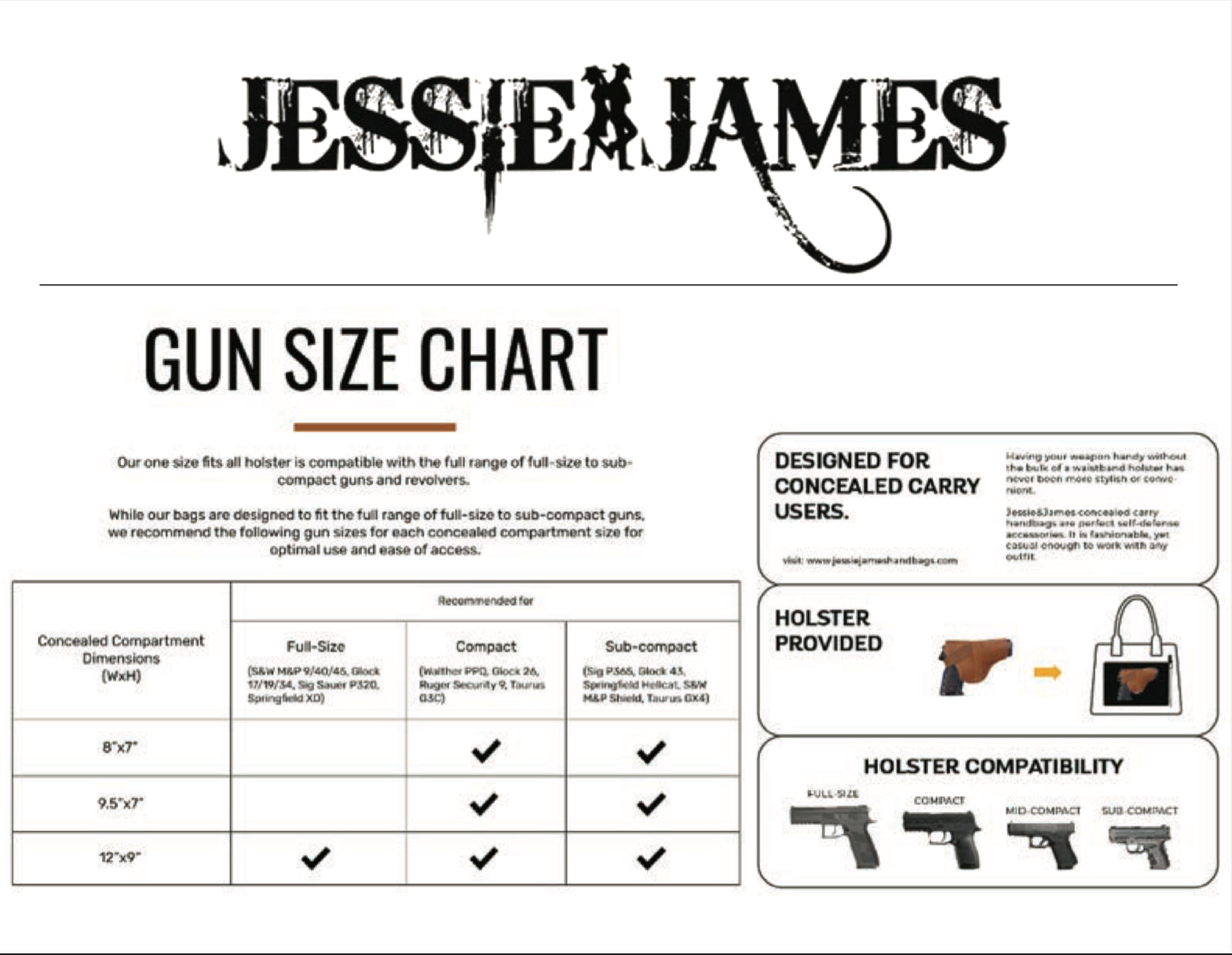 - Concealed Compartment: 10"W X7"H