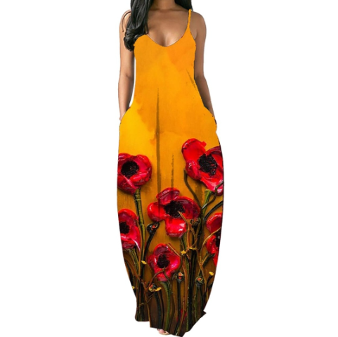 Indulge in luxurious style with our Floral Printed Sundress, featuring a breathtaking floral print and functional pockets. Elevate your wardrobe with our Floral Printed Sundress - a stunning blend of beauty and practicality. Adorned with an intricately designed floral pattern, this sundress is perfect for indulging in any occasion. Plus, with convenient pockets, you can effortlessly carry your essentials while basking in the elegance of this exquisite garment.
