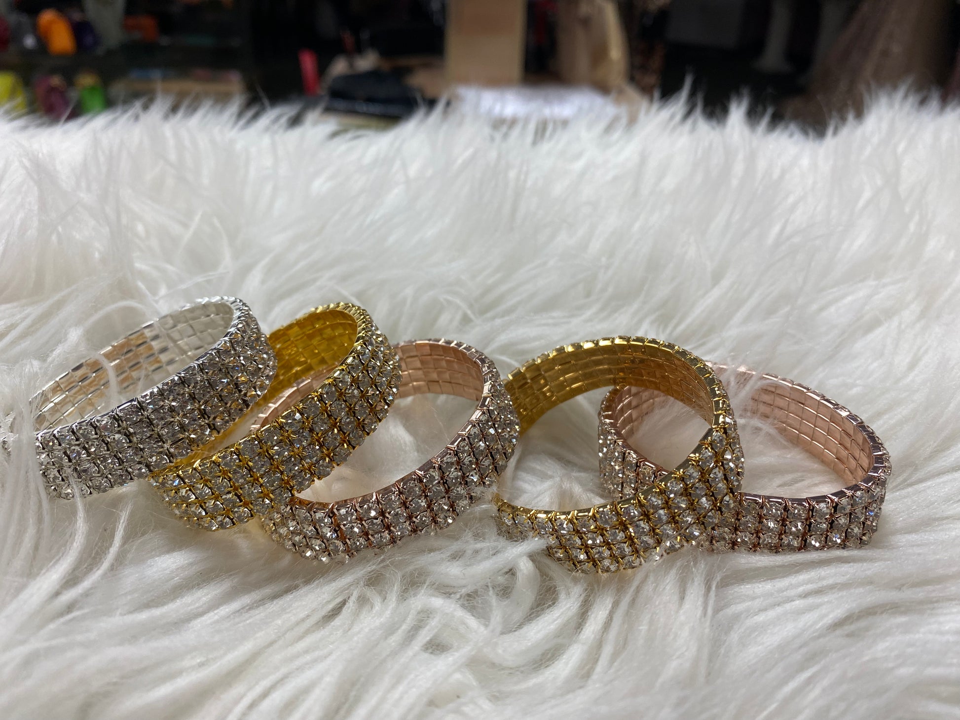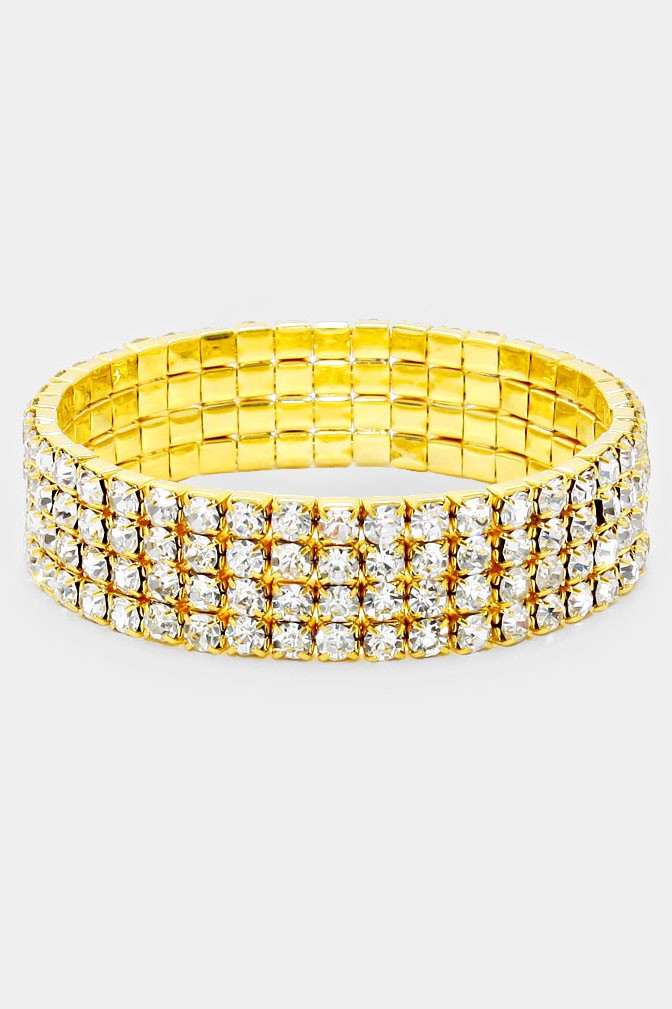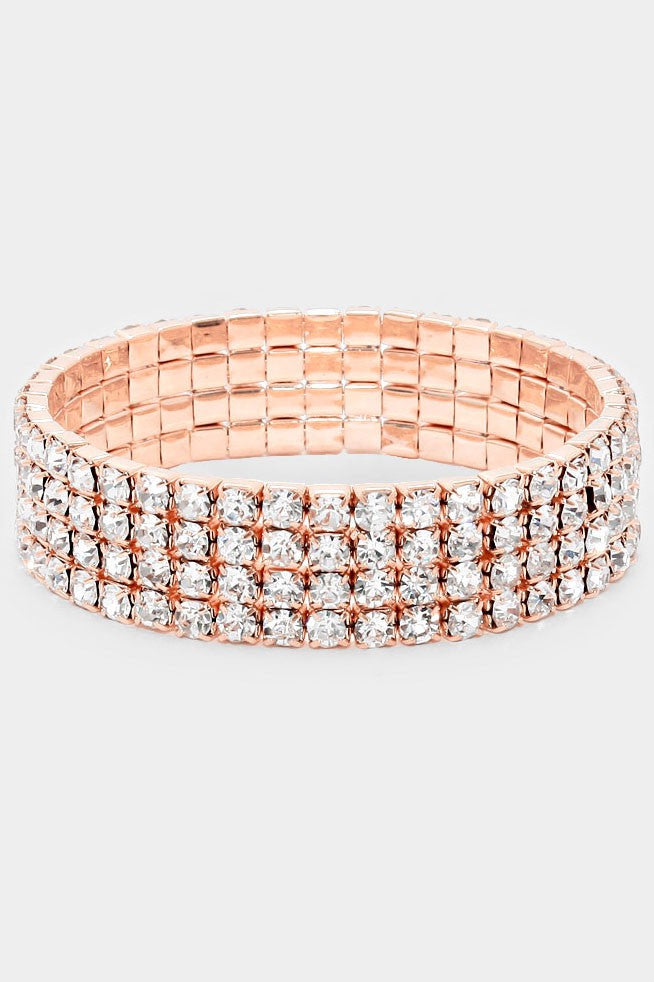 Rhinestone Bridal Bracelet-4 Row Silver, Rose Gold and Gold Available